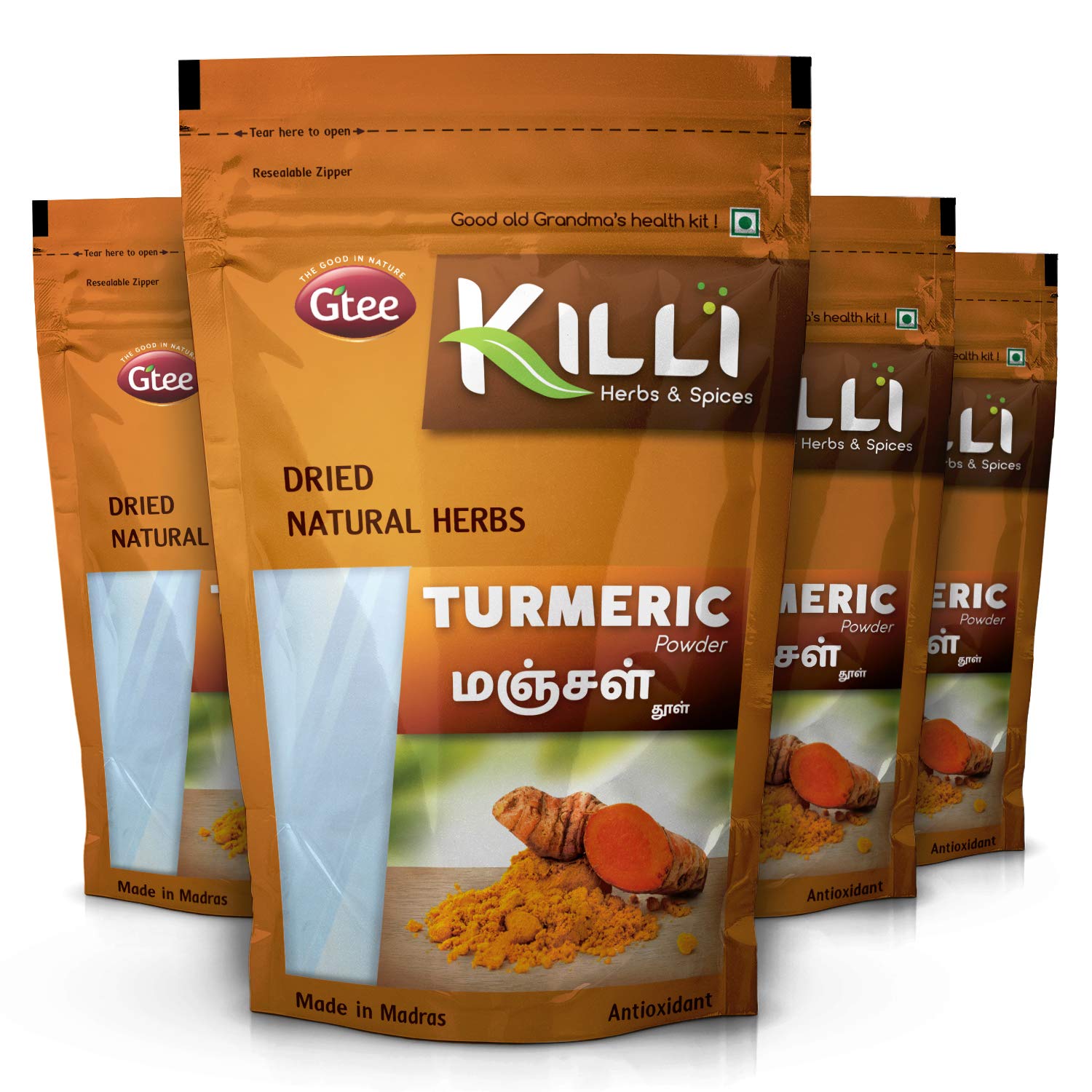 KILLI Turmeric | Manjal | Haldi | Pasupu | Curcuma longa | Arishina Powder 100g (Pack of 4)
