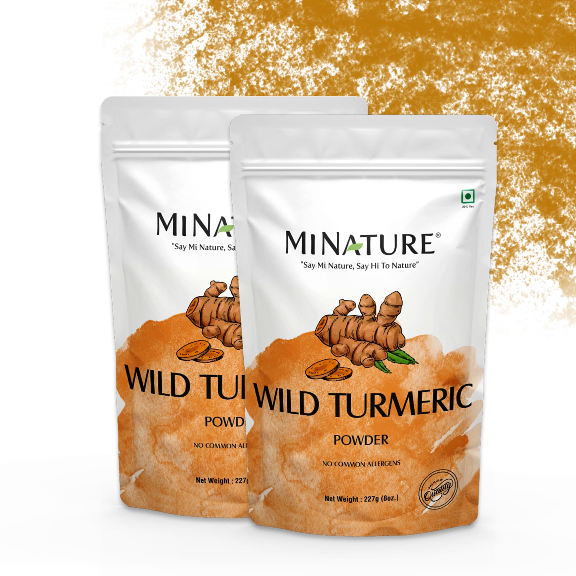 mi nature Wild Turmeric Powder | Kasturi Manjal(Jungli Haldi/Amba haldi) Powder | Dark Spot PigmentationTan Removal| Naturally refreshed Even Skin | Resaleable Zip Lock Pouch 227g (Pack of 2)