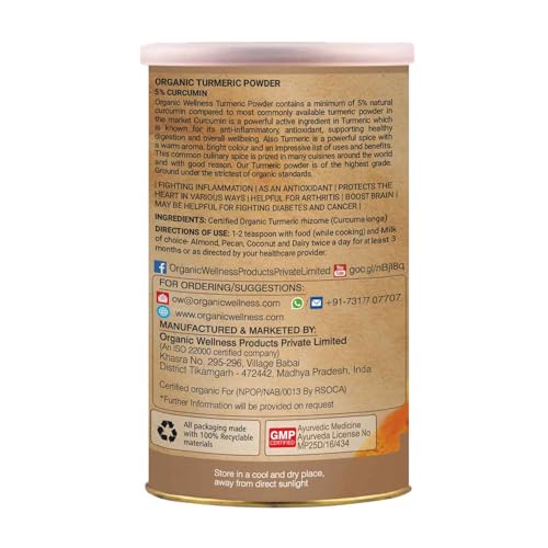 Organic Wellness manufactures authentic organic products of . A creative solution with a unique balance sheet that focuses equally on everyone in the chain starting from the mother earth farmers employees business associates. Our products include tea super foods supplements & accessories. Ow'zeal turmeric powder with 5% natural curcumin content than most available variants. Healthy inflammation response healthy joints aids liver and blood function keeps skin healthy improves digestion.