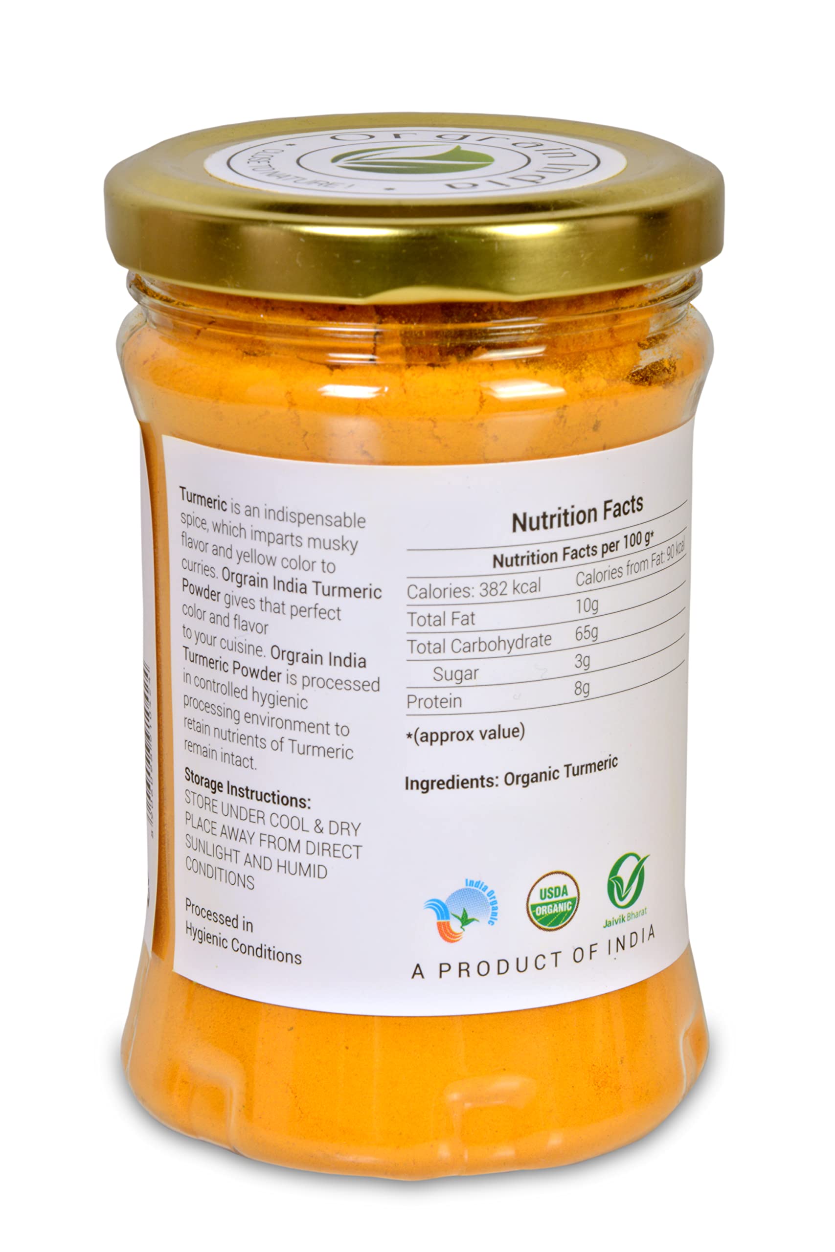 Orgrain India Turmeric Powder Grown without use of any chemicals pesticides or insecticides. Perfect for turmeric lattes (Golden Milk) or added to smoothies baked goods curries soups and stews. Pair with black pepper for optimal curcumin absorption!