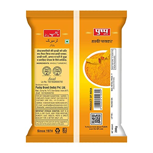 Pushp Brand Turmeric Powder Pouch (200gm pack) (Pack of 5)