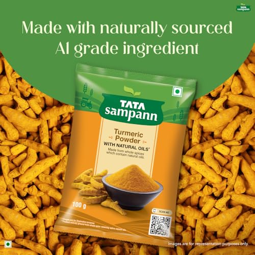 Tata Sampanns range of spices are crafted to satisfy your taste buds. Tata Sampann sources all its spices & masalas from the most authentic places i.e. chillies from Guntur Andhra Pradesh coriander powder from Kumbhraj Madhya Pradesh kasuri methi from Nagaur and turmeric from Salem Tamil Nadu. Tata Sampann Turmeric Powder is sourced from Salem region in Tamil Nadu which is famous for its rich yellow highly aromatic turmeric. Made from whole spices that contain natural oils haldi has an active ingredient called curcumin which is known to act as an antioxidant*. This turmeric powder can be teamed up with pulao greenies vegetable soup or smoothies the choice is yours! Storage Instructions: Store in a cool and dry place. *Based on internal samples tested for naturally present volatile oil and curcumin content.