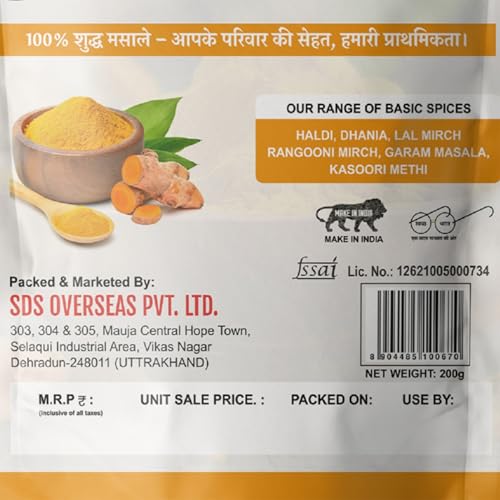 SECURE PACKAGING: We understand the importance of preserving freshness. Our Haldi Powder comes in a 200g package securely sealed to ensure it remains aromatic and ready for your dishes and wellness endeavors.