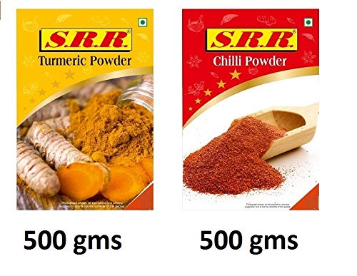 SRR Masala Turmeric Haldi Powder Chilli Powder Pack of 2 Combo 500 Grams Each All Natural No Artificial Colors