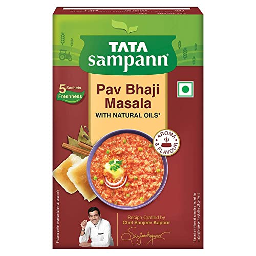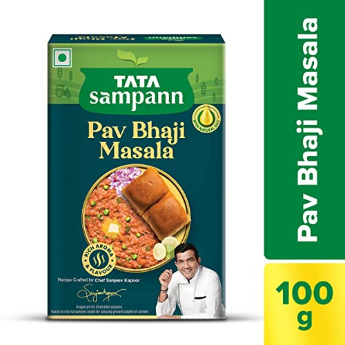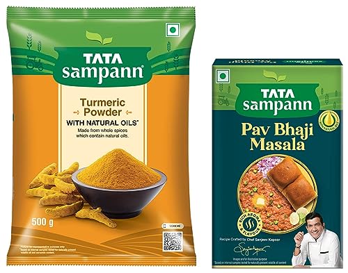 Tata Sampann Turmeric Powder With Natural Oils 500gTata Sampann's range of spices are crafted not just to satisfy your taste buds but also to take care of your health. Made from whole spices that contain natural oils haldi has an active ingredient called curcumin. With no added preservatives this turmeric powder can be teamed up with pulao greenies vegetable soup or smoothies the choice is yours! Storage Instructions: Store in a cool and dry place.Tata Sampann Pav Bhaji Masala with Natural Oils Crafted by Chef Sanjeev Kapoor 100gTata Sampann Pav Bhaji Masala is specially crafted for you by Chef Sanjeev Kapoor to unleash the master chef within you. Tata Sampann spices are made to retain their natural oils ensuring each bite is aromatic and flavorful. Each pack comes with an exclusive Chef Tip to make every meal exciting! Now make Bombay Style Pav Bhaji at home and watch everyone lick their plates clean! Explore Tata Sampann Blended Spices Range â Chaat Masala Paneer Masala Chhole Masala Chicken Masala Dal Tadka Masala Meat Masala Kitchen King Masala and Garam Masala. Chef's Tip: Toss leftover rice with vegetables and some Pav Bhaji Masala to make a quick Bombaiya Pulao.