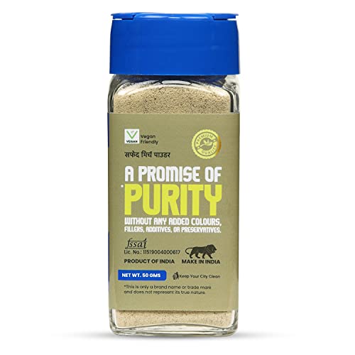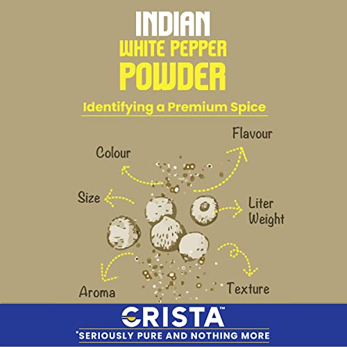 CRISTA Indian White Pepper Powder | Safed Mirch | Zero added Colours Fillers Additives & Preservatives | High Volatile Oil Content | Natural Dried & Aromatic | 50 gms