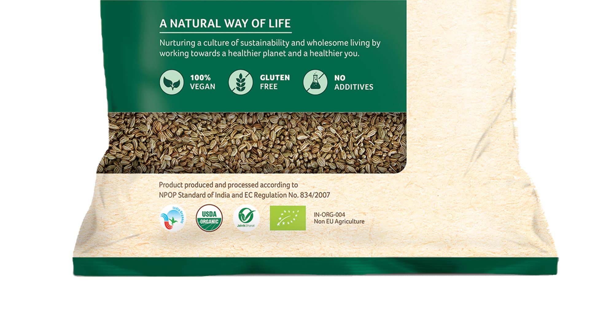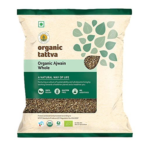 Organic Ajwain Whole is one of the most essential ingredients in an Indian kitchen. It acts as a laxative stomachic and appetizer giving you a hot pungent flavour. Organic Tattva's Organic Ajwain Whole is filled with the richness of protein. Apart from this Organic Ajwain Whole also contains dietary fibres sodium and various other nutrients. A 100g serving of Organic Ajwain Whole contains 0g trans fat and 0mg cholesterol. The calorie count per serving of Organic Ajwain Whole is 454.25. Add a flavourful healthy touch to your food with Organic Ajwain Whole by Organic Tattva.