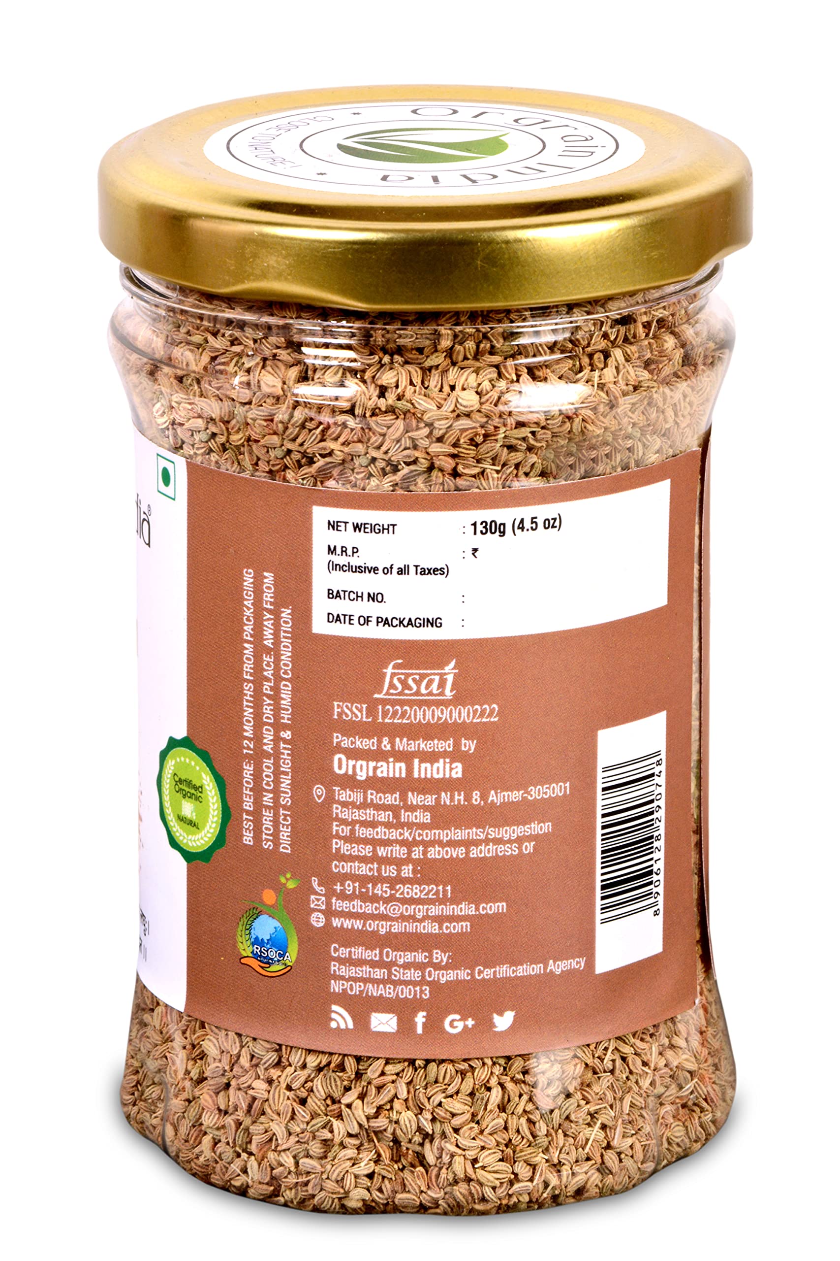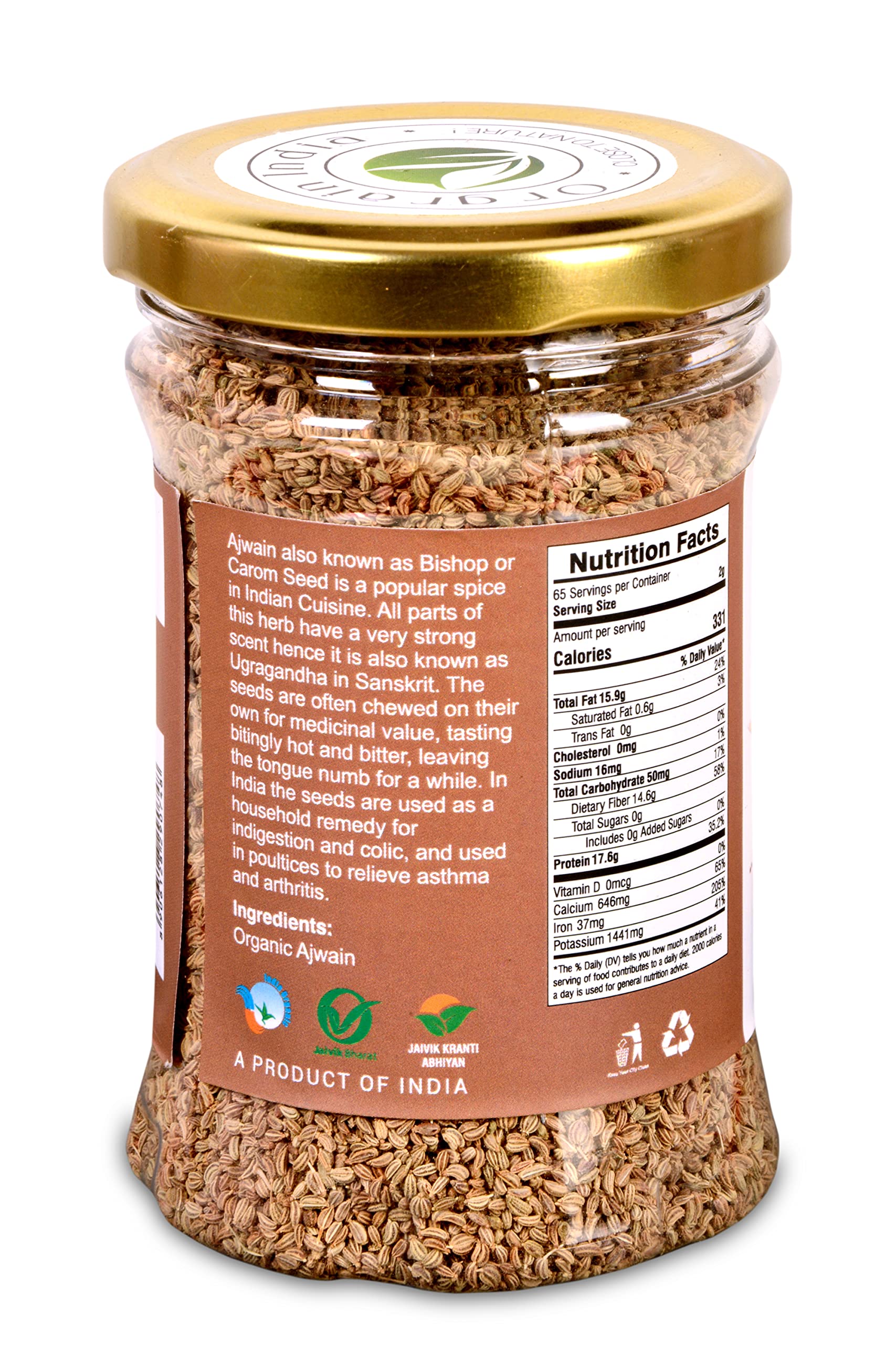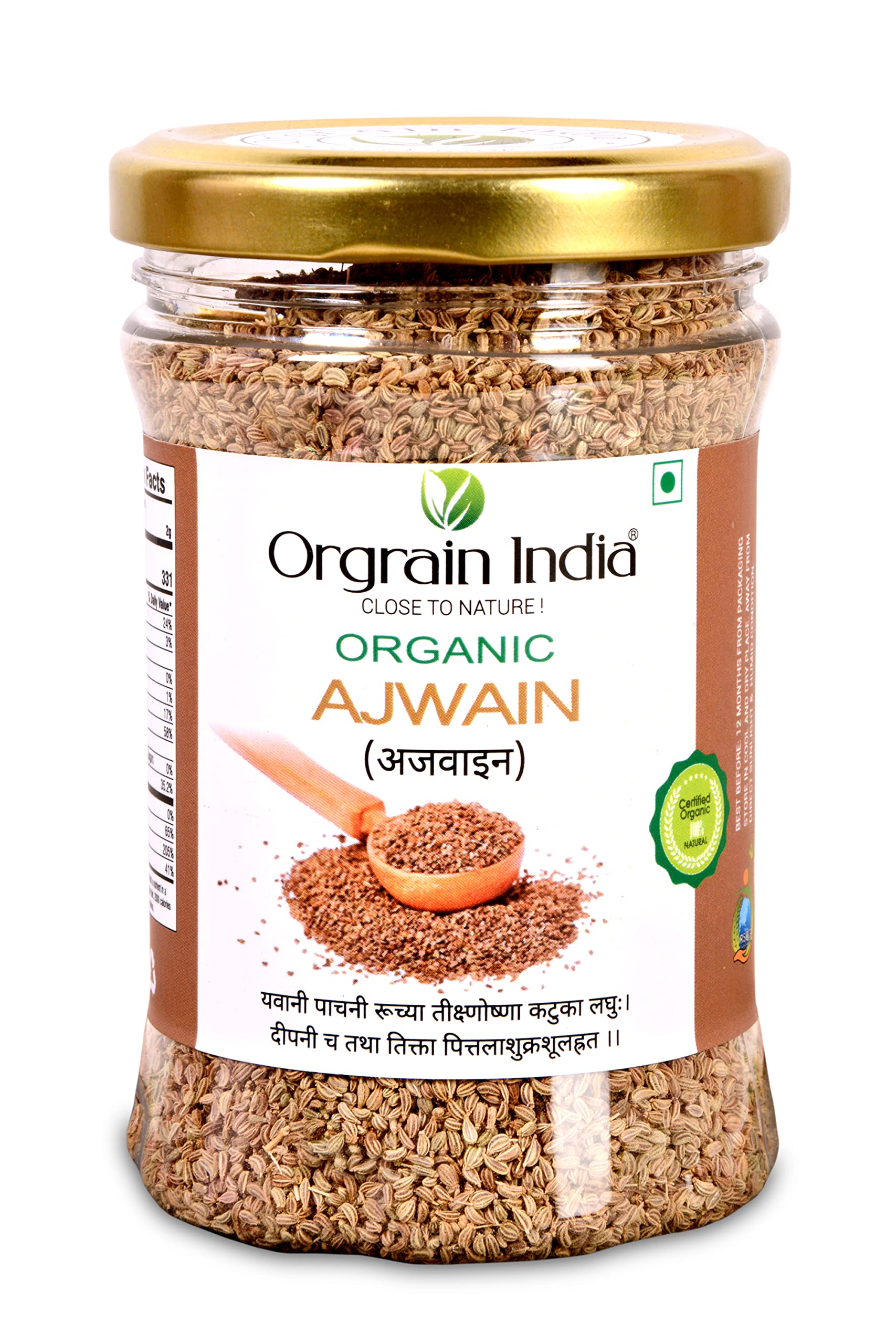Orgrain India Organic Ajwain Whole 130g | Carom Seeds | Settles The Stomach & Improves Digestion | Weight Loss