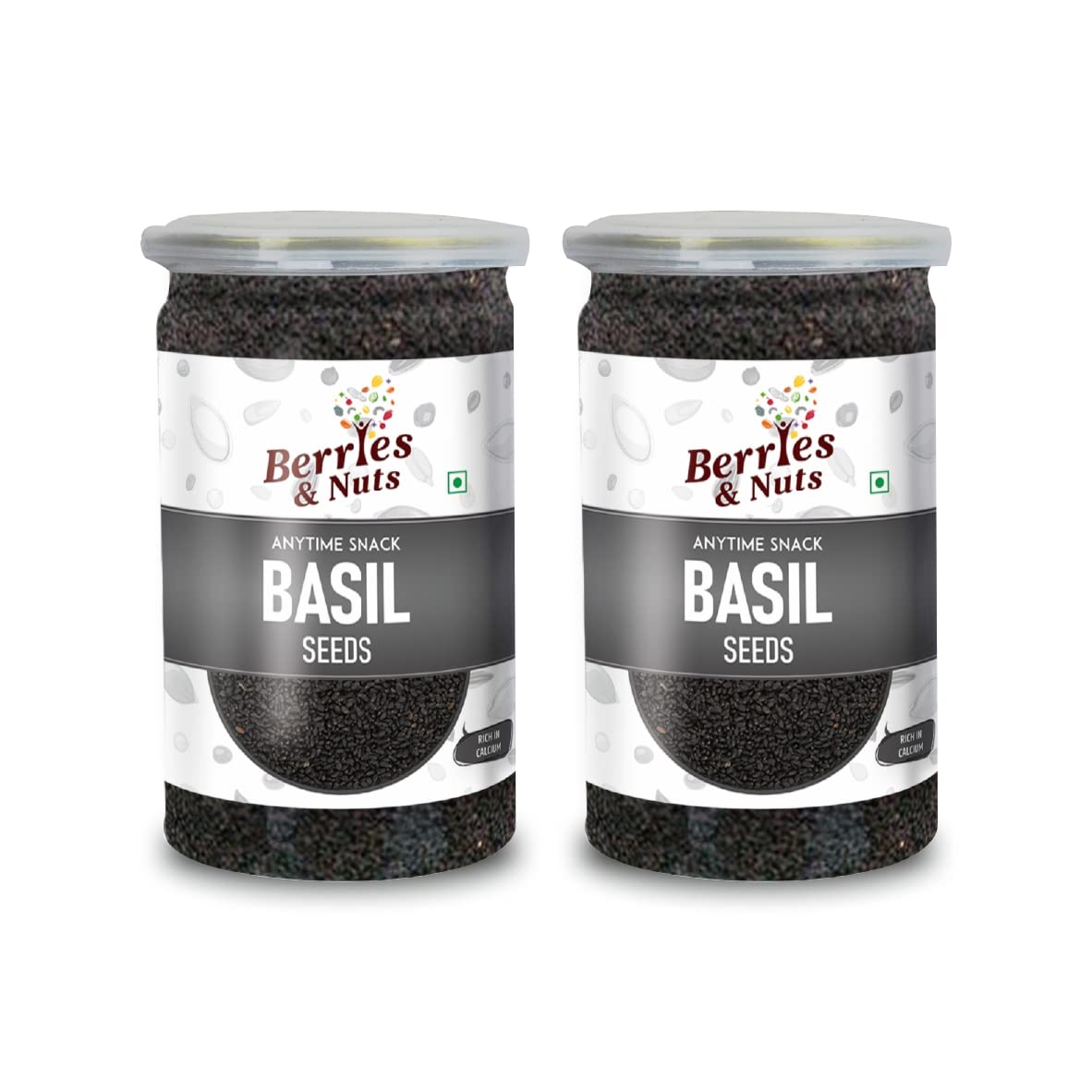 Berries And Nuts Raw Basil Seeds | Sabjya Seeds, Tukmariya, Sabja | 400 Grams | 2 Bottle of 200 Grams