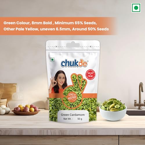 Chukde - Hari Elaichi (1.76 OZ) - Green Cardamom - Authentic Indian Spice - Bold Flavor & Fresh Aroma - Ideal for Tea Desserts & Curry - Whole Spices - 50 Gram