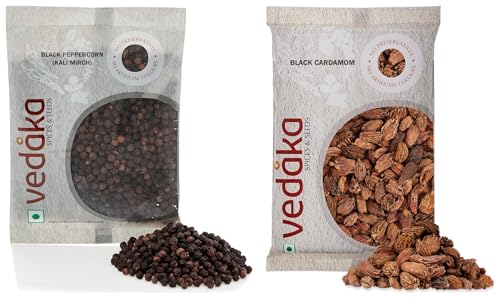 Vedaka Whole Black Cardamom 100gAll vedaka products are hygienically packed and undergo rigorous and stringent laboratory tests to meet food safety norms.Vedaka Black Peppercorn (Kali Mirch) 100 gAll Vedaka spices are hygienically packed and undergo rigorous laboratory tests to meet stringent food safety norms.