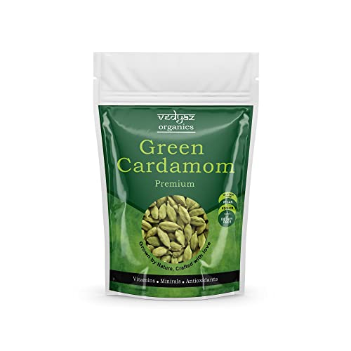 Vedyaz Organic Green Cardamom Whole 50gm - 100% Natural 8mm BOLD Choti/Hari Elaichi