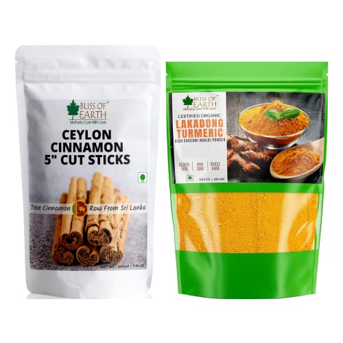 Cinnamon as most of the cinnamon in the global market is "Cassia". Bliss of Earth helps cinnamon lovers to provide pure Ceylon Cinnamon also known as true cinnamon which gives superior quality taste and aroma while conditioning the better health of cinnamon lovers. bliss of Earth brings you the extraction of Mother earth from the hill country of Sri Lanka supporting small scale farmers while making our customers feel the perfection of ultimate taste and goodness of real ceylon cinnamon. Lakadong Turmeric powder offers unmatched health benefits due to its highest natural curcumin content of 6-8% as compared to other turmeric powders. Strong flavor and aromatic fragrance makes its once fo the finest turmeric in the world