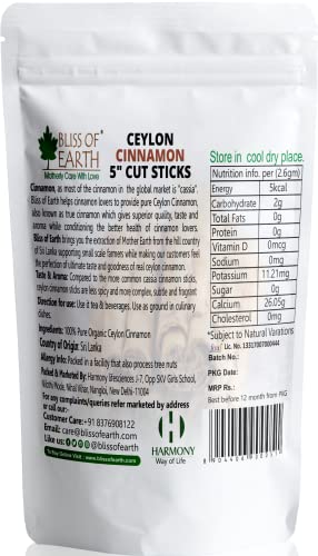 Cinnamon as most of the cinnamon in the global market is "Cassia". Bliss of Earth helps cinnamon lovers to provide pure Ceylon Cinnamon also known as true cinnamon which gives superior quality taste and aroma while conditioning the better health of cinnamon lovers. bliss of Earth brings you the extraction of Mother earth from the hill country of Sri Lanka supporting small scale farmers while making our customers feel the perfection of ultimate taste and goodness of real ceylon cinnamon.