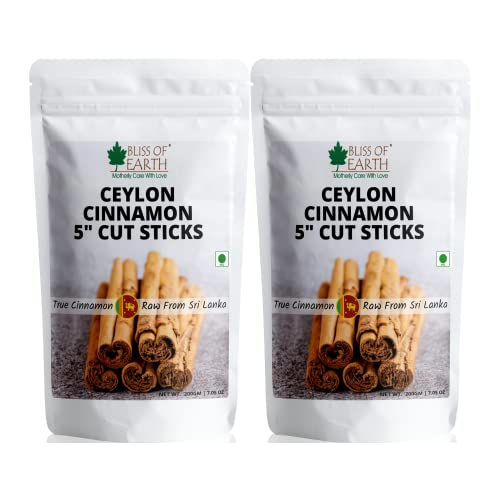 Bliss of Earth 2x200gm Ceylon Cinnamon (Dalchini) 5" Cut Sticks True Cinnamon Raw From Sri Lanka Original