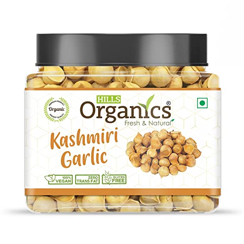 HILLS ORGANICS Kashmiri Garlic (Lehsun) 100% Fresh & Natural Organic Single Clove Garlic | Snow Mountain Garlic | Allium Sativum - Jar Pack (100 gram)