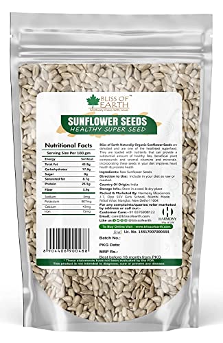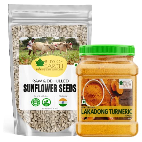 Bliss of Earth Organic Lakadong Turmeric Powder Bliss of Earth Lakadong Turmeric Powder is an organic versatile herb known for centuries for its health benefits. It offers an unmatched health benefits due to its highest natural curcumin content of 6-8% as compared to other turmeric powders. Grown in the hills of the Lakadong Village in Meghalaya Iindia this turmeric powder not only has a rich colour but also an intense flavour. It also has an aromatic fragrance that shows well when used in curries. Its natural flavor makes a perfect addition to your favourite curries vegetables or milk. Bliss of Earth Naturally Organic Sunflower Seeds are dehulled and are one of the healthiest superfood. They are loaded with nutrients that can provide a substantial amount of healthy fats beneficial plant compounds and several vitamns and minerals. Incorporating these seeds in your diet improves heart health & prostate health