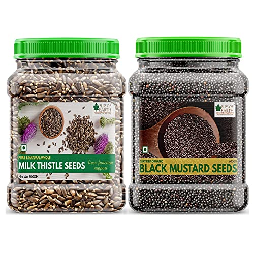 Bliss of Earth Milk thistle seeds are used as herbal remedy derived from the milk thistle plant also known as Silybum marianum. The active ingredients silymarin extracted from milk thistle is known to have antioxidant antiviral and anti-inflammatory properties. Bliss Of Earth: Certified Black Mustard Seeds are one of the main ingredients used in indian kitchen. it can be used whole or ground fresh before cooking. it can also be used for chutney pickles or with other indian spices for a homemade curry spice blend.