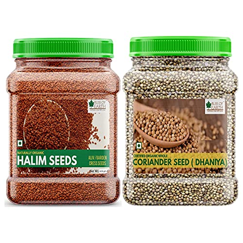 Bliss of Earth Naturally Organic Halim seeds also known as Haleem or Aliv are garden cress seeds loaded with many health benefits and nutritional qualities. These seeds were considered as an important nutritional and medicinal plant in India since the Vedic era (between 500? 1700) B.C. Halim Seeds are good source of protein fiber phenolic acids and so many nutritional compounds and considered as a functional foods that promote overall health and well-being while keeping diseases at bay apart from providing nutrition. The nutritional value of coriander seeds is without doubt mind-blowing. It contains 11 different types of essential mineral oils and vitamins Dhania seeds are also used as a spice in indian chinese pakistani european and middle-east culinary preparations. In north india dhania powder is widely used for spicing pickles chutneys stews marinades sausages and curries.