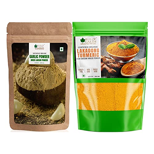 Bliss of Earth Combo Of Naturally Organic Garlic Powder (200gm) Dried And Turmeric Powder (250gm) For Cooking Pack Of 2