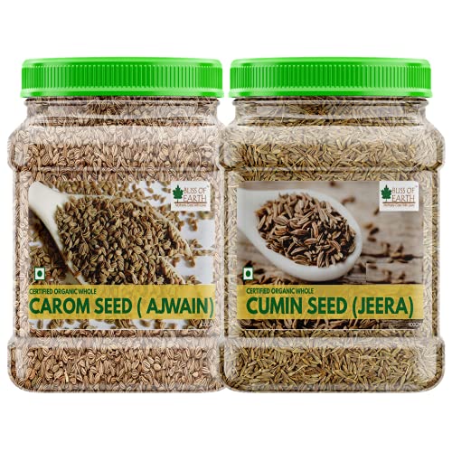 Bliss of Earth Combo of Organic Carom Seeds (ajwain) and Cumin Seeds (jeera) to Make Your Food Healthy and Delicious (400gm Each) Pack Of 2