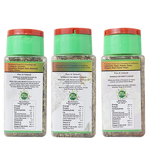 This is a very versatile combo and a must for every kitchen. Easylife Italian Seasoning is a blend of ground herbs that originates from the Mediterranean region. It has a warm and aromatic flavour used especially in Western cuisine. It can be used with breadsticks dips chicken baked fish vegetables egg and egg dishes stuffing and soups. Easy life Mixed Herbs are the perfect blend of 5 herbs when people want western cuisine and are not sure of which herb to use Mixed herb is the perfect option to go for. It has warm and aromatic flavor. It can be used with Soups Salads Fish Chicken and Red Meats. Easy Life Garlic Herb Bread Seasoning is a versatile seasoning that one savors for European or Italian cuisine. It adds a blended aromatic flavor to all dishes. It can be used with pizzas roasted meats soups sprinkled on top of bread sticks rolls vegetables baked potatoes fish or chicken. It can be used to make garlic bread at home. Easy Life Seasoning counter is the perfect destination for Pure natural herbs and fresh Spices with natural flavor & aroma. Easy Life has been in the market for over 24years and we have tied up with many major offline retail majors. It is our constant endeavor to offer the widest possible range to consumer and now have an ever expanding range of selections across sauces spices seasonings power packed seeds and herbs. We maintain great taste and assured uniform quality and our products shall surely be your favorites brand soon after your first purchase. Happy cooking!! :)