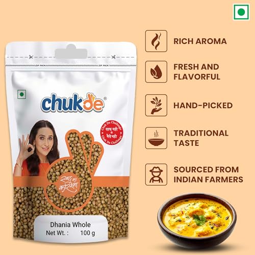 Chukde - Dhania Sabut | Coriander Seeds | Whole Spices | Aromatic Indian Spice for Authentic Flavors | Ideal for Cooking Seasoning & Masala Blends - 100 Gram (Pack of 4)