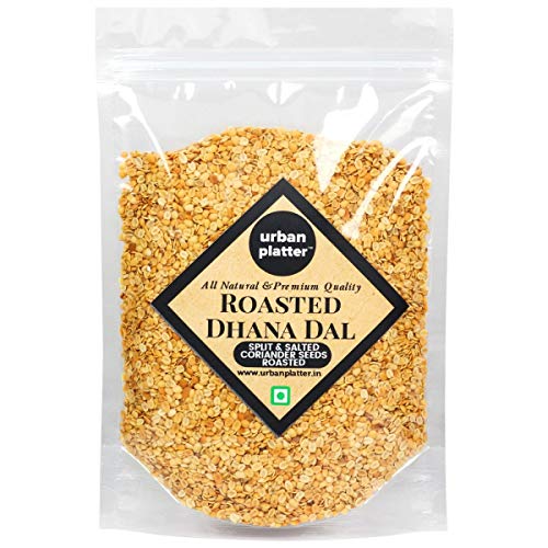 Urban Platter Roasted Dhana Dal (Roasted Split Coriander Seeds) 1Kg Finest quality split coriander seeds roasted and mildly salted; crunchy and crisp. A traditional and an excellent post-meal . Coriander Seeds are rich in Vit-C (the only seed to do so) Vit-B family and thiamin riboflavin and niacin. Urban Platter - Simply Good Food! :)