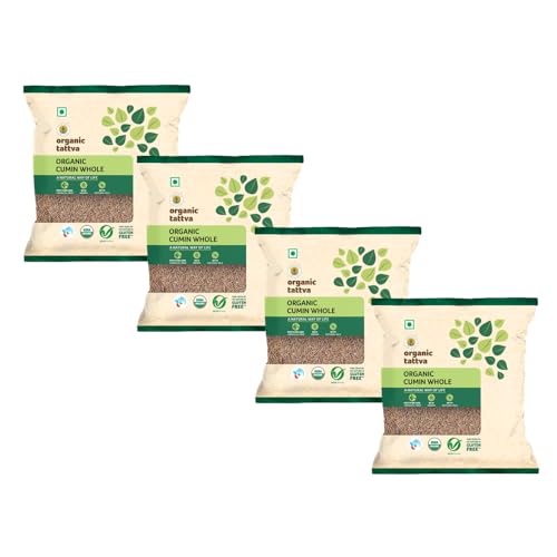 Organic Tattva Organic Cumin (Jeera) whole offers you one of the greatest and fresh Cumin which is popularly well-known as special and important spice that gives an extreme pleasure. It consists of many phyto-chemicals that are known to have antioxidant anti-flatulent and carminative properties. It is 100% certified organic and have natural nutrients needed for a healthy diet. Organic Cumin Whole also contains dietary fibres vitamins and various other nutrients. A 100g serving of Organic Cumin Whole contains 0g trans-fat and 0mg cholesterol. The calorie count per serving of Organic Cumin Whole is 444.42. Organic Tattva Spices are certified organic and are completely free from artificial colours and preservatives. Our Spices give you the goodness flavors and aroma that came from pure and unadulterated spices. Add them to your delicious food recipes to infuse a punch of flavor without compromising on your health. For this reason we maintain a consistency in the grade of your spices across the year. Add a flavourful healthy touch to your food with Organic Cumin Whole by Organic Tattva !!!
