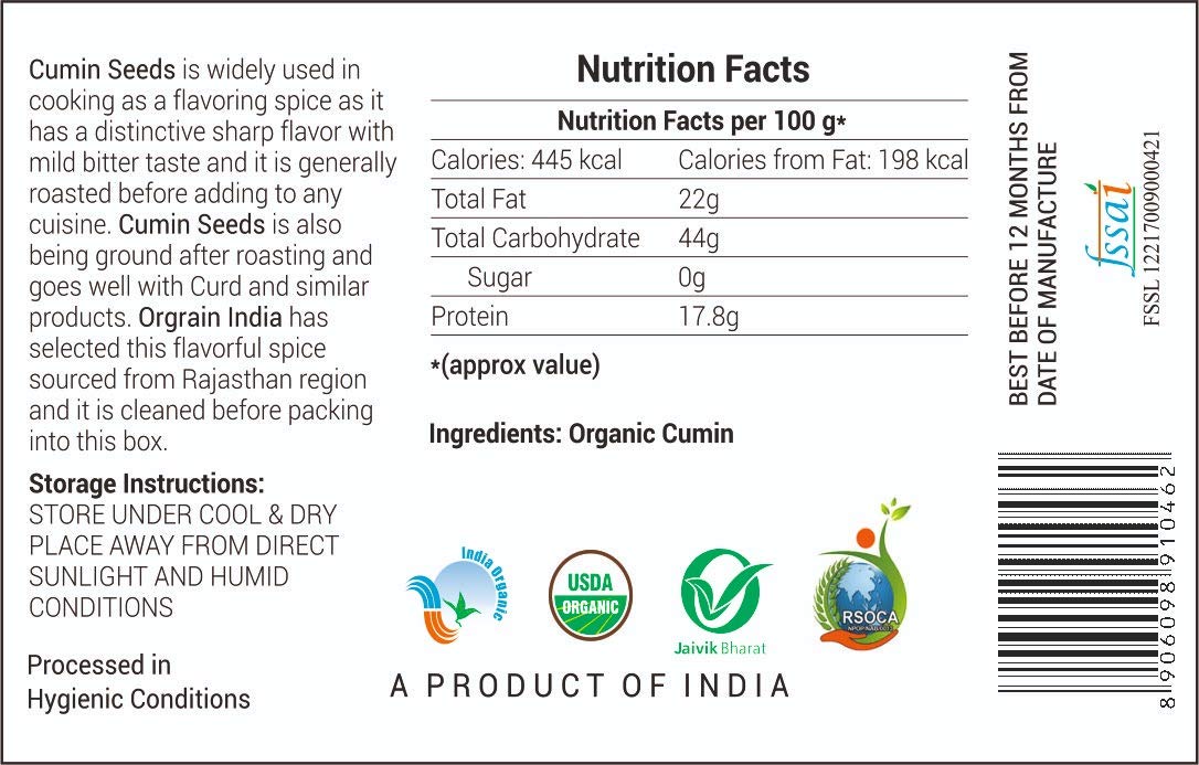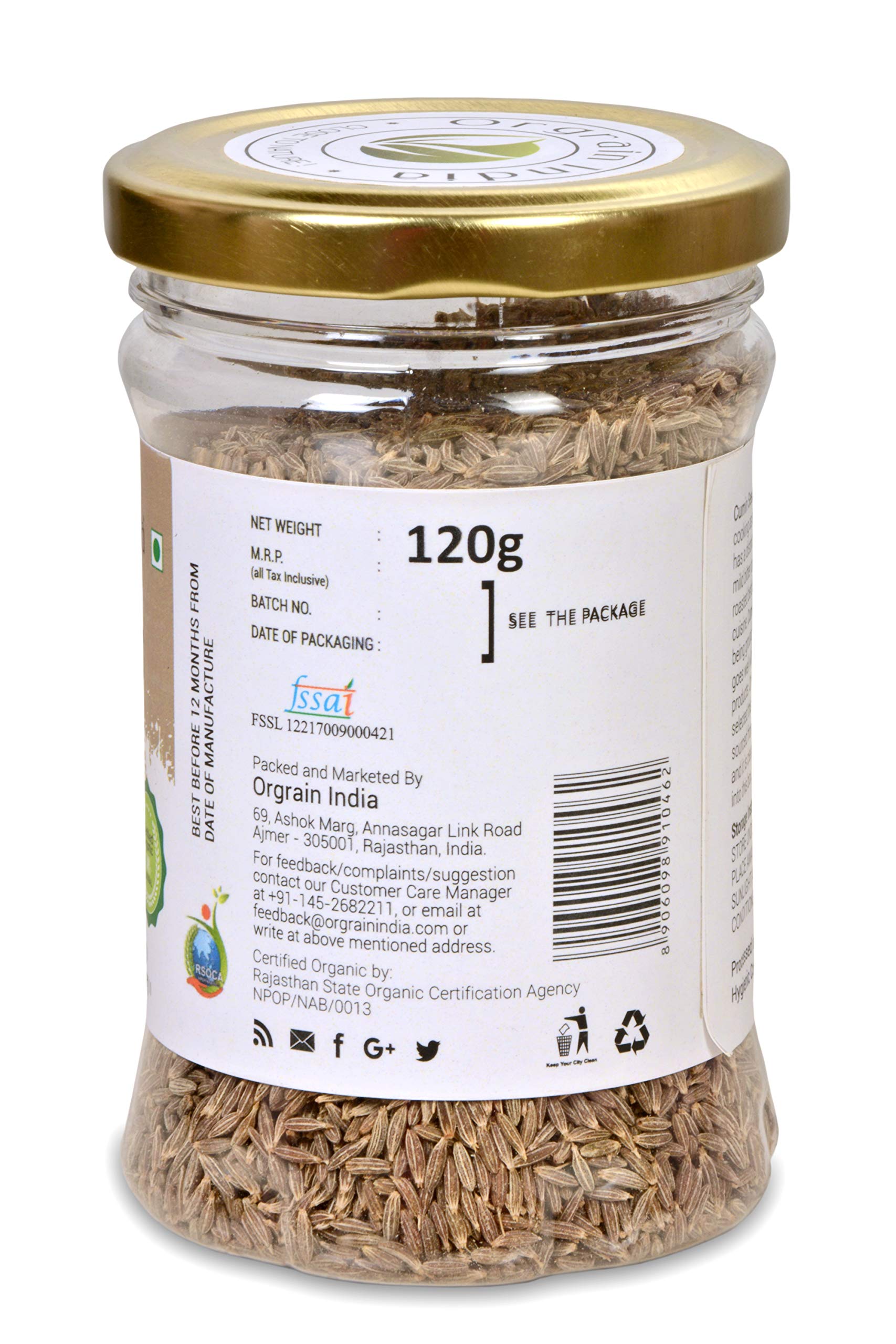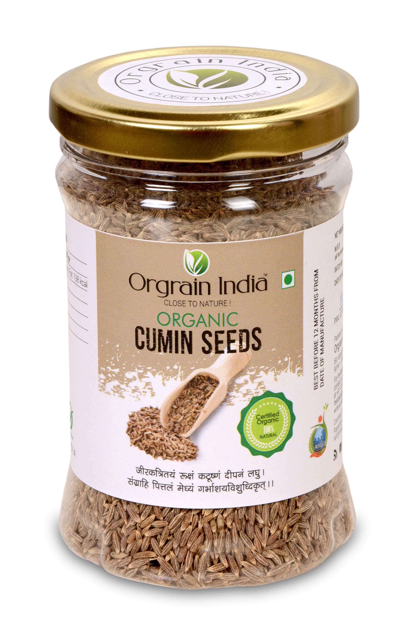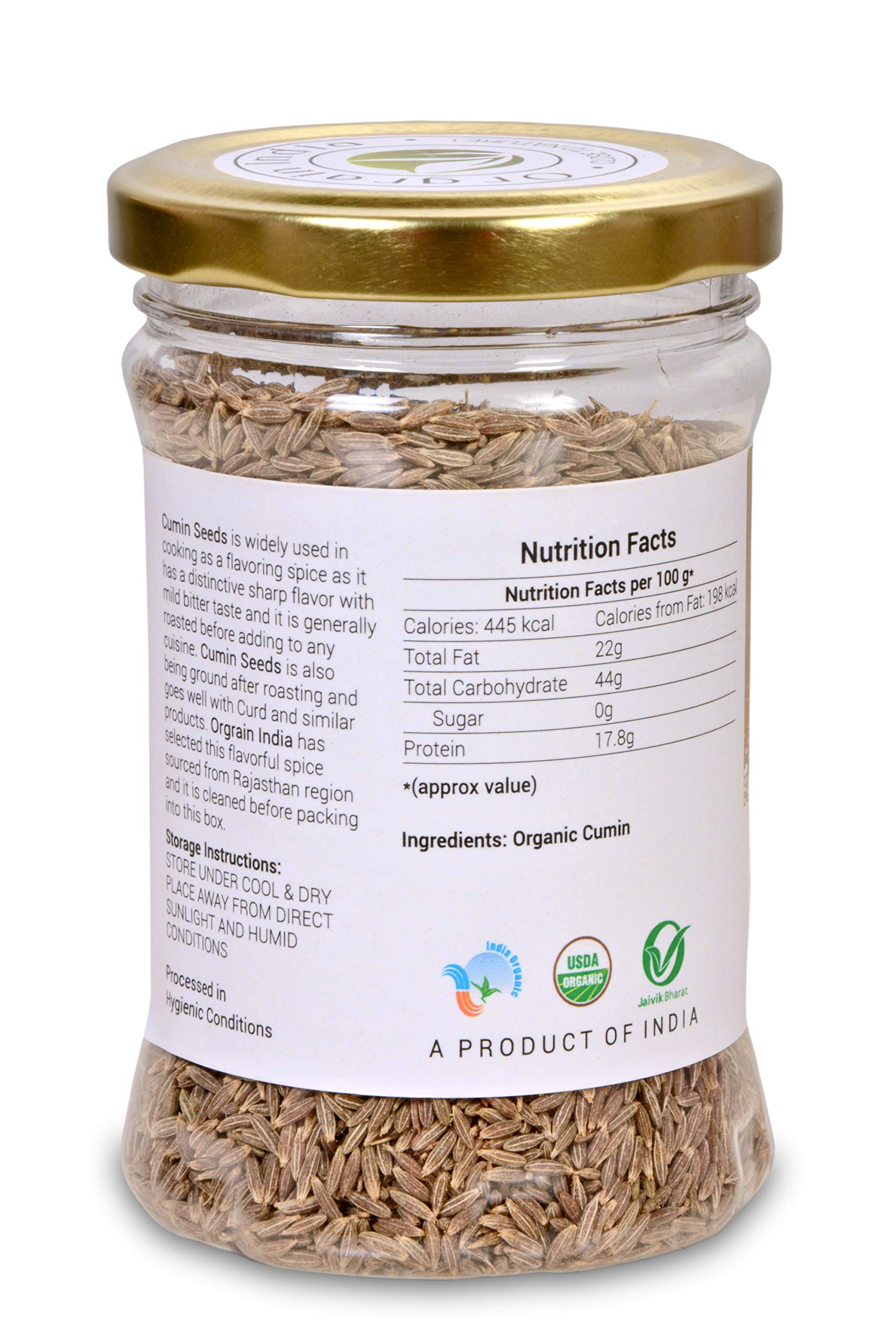 Orgrain India Certified Organic Cumin/Jeera Seeds Whole (Cuminum cyminum) 120g | Company-Owned Farmlands