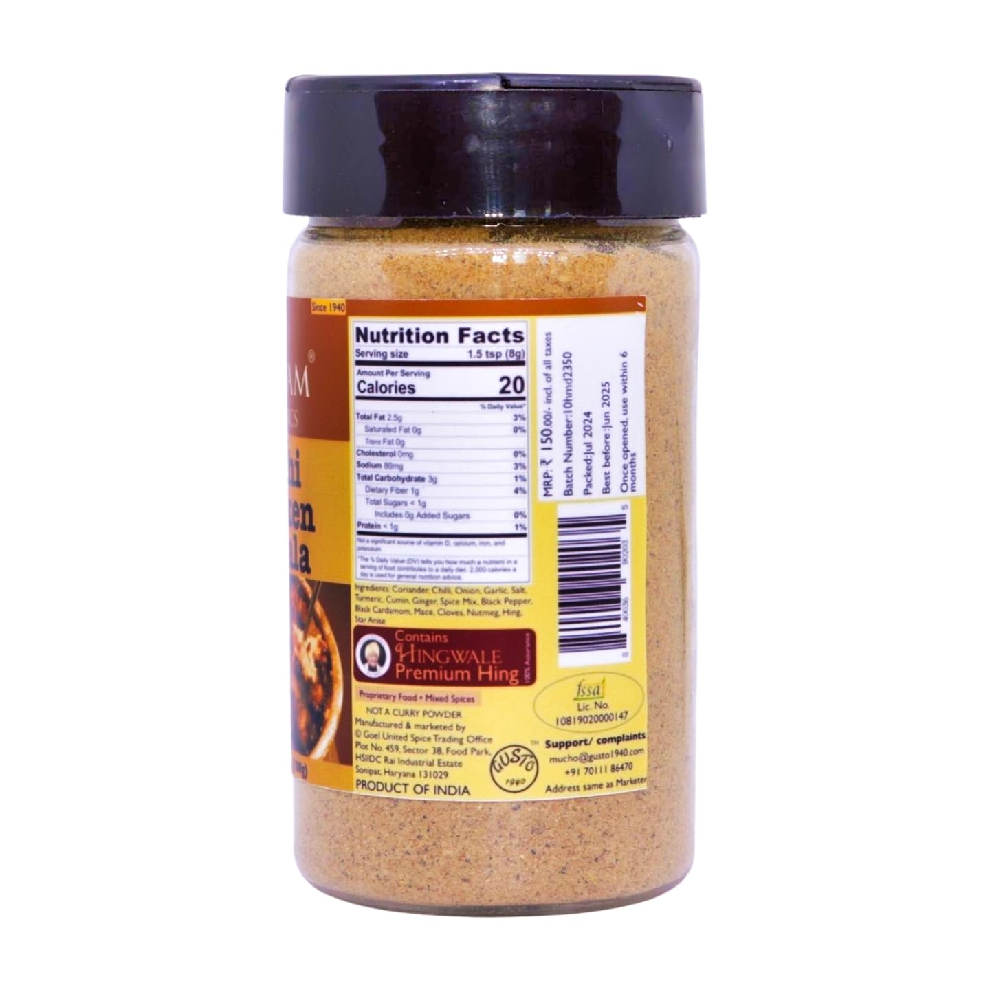 Coriander Red Chilli Onion Garlic Salt Turmeric Cumin Ginger Black Pepper Black Cardamom Mace Cloves Nutmeg Hing (Hingwale by Tassyam) Star Anise