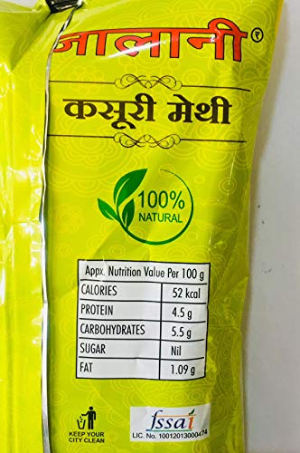 Jalani Kasuri Methi : Dried Methi leaves procured from the places famous for the crop. Best quality Kasuri Methi is cleaned and packed in hygienic condition to retain original taste and aroma. For delicious paratha chapatti naan Puri etc. add Kasuri Methi with flour.