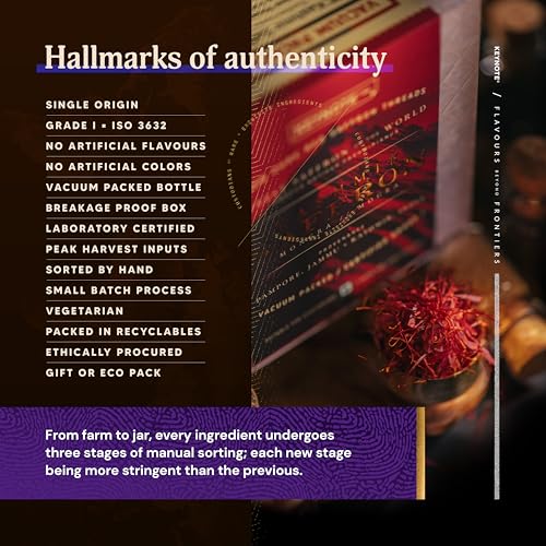 • Certified by NABL Laboratory IS5453 Standard: Each pack of Kashmir Saffron is stamped with three essential figures.