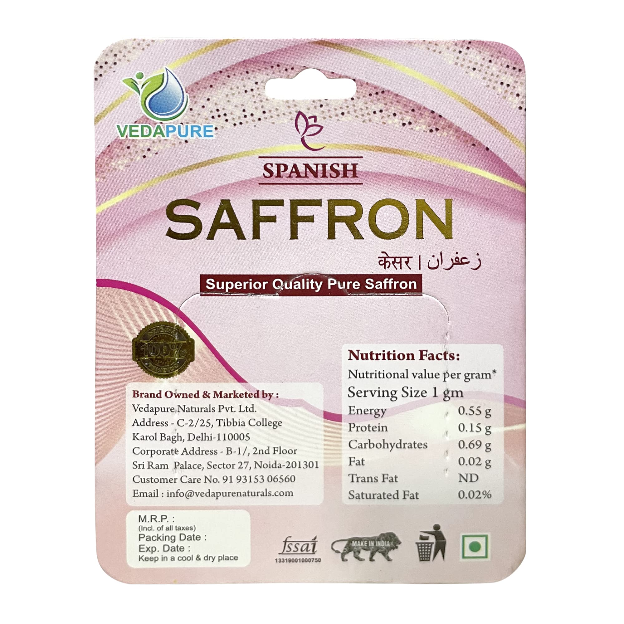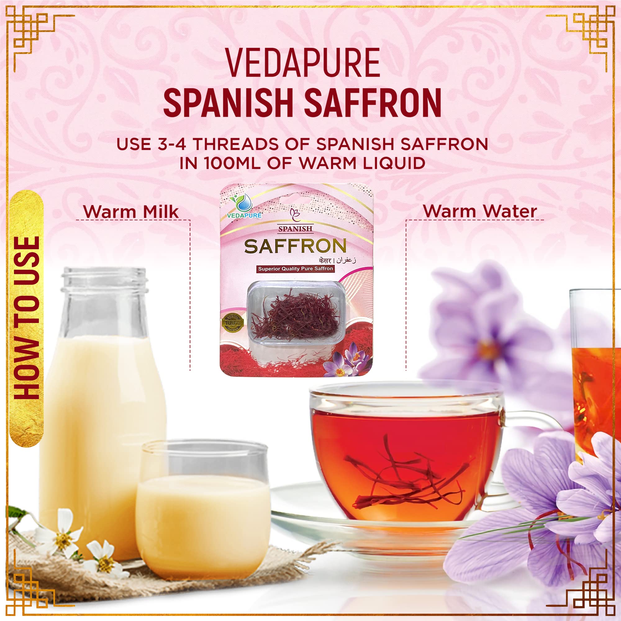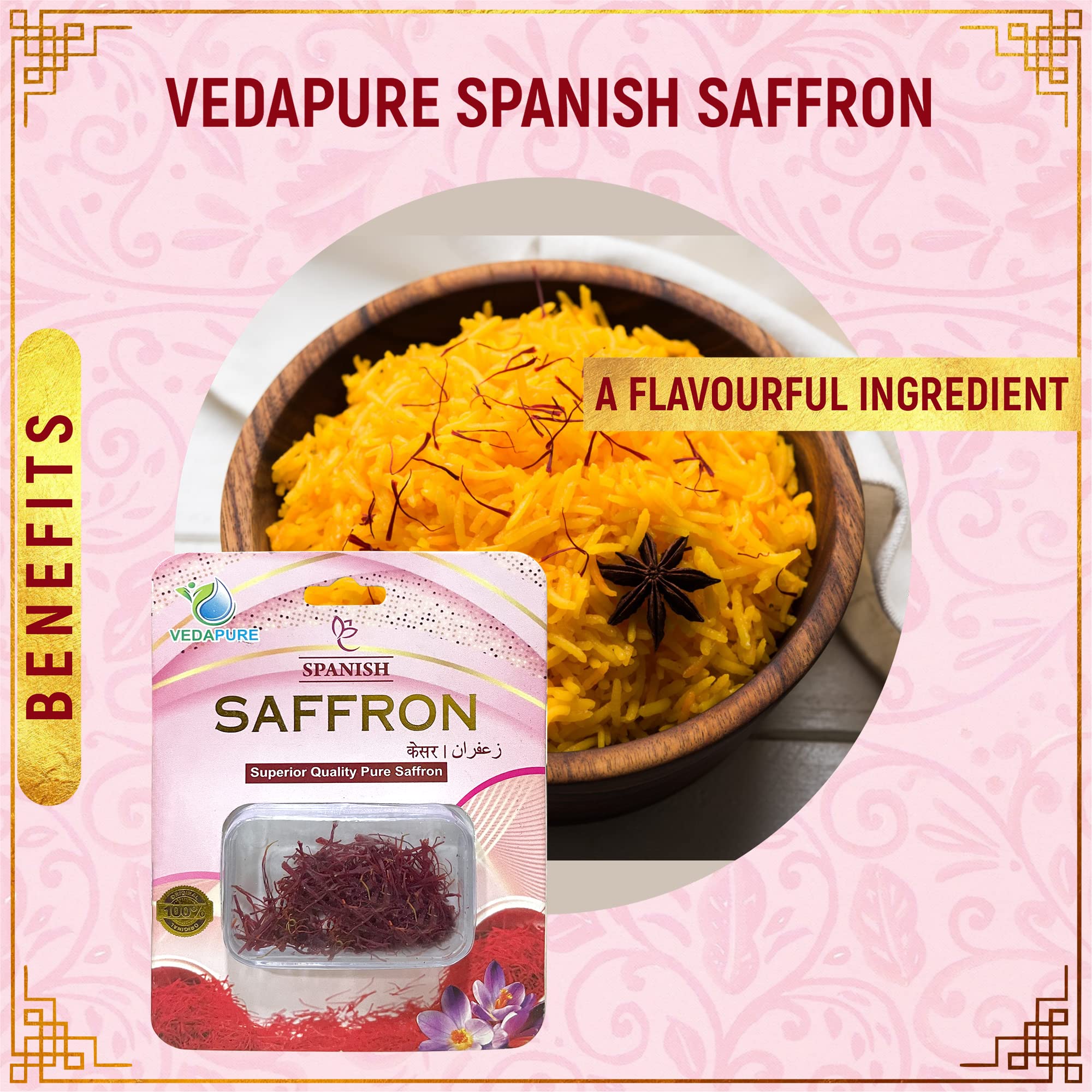VEDAPURE 100% Pure Spanish Saffron/Kesar (A++ Grade) for Pregnant Women Babies Beauty Cooking & Improved Health - 1 Gram Pack of (1)