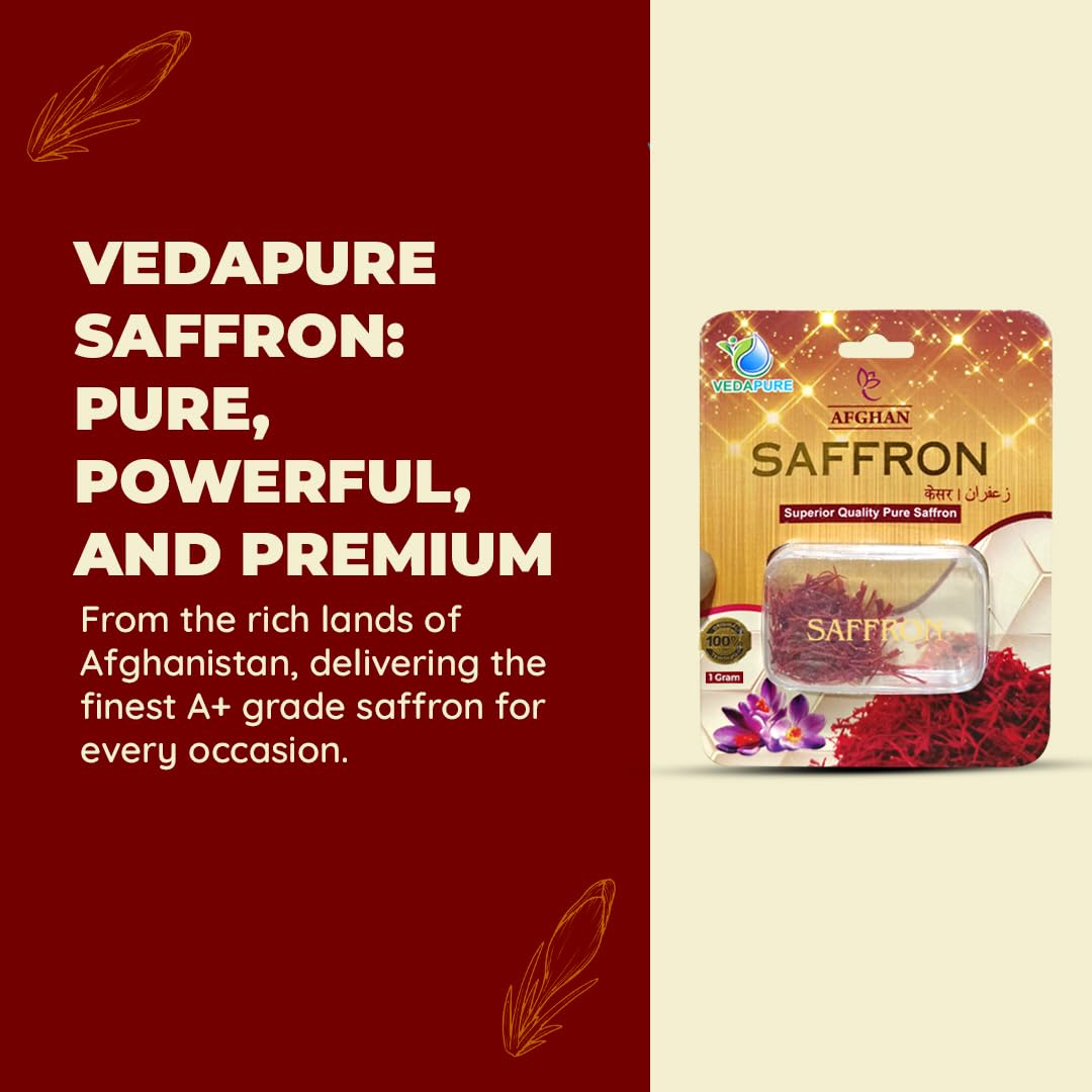 VEDAPURE Saffron | saffron original Afghani | Finest A+ Grade Afghani Kesar For Pregnant Women Cooking Tilak &Sweets| Pure Afghani Kesar |1 Gm
