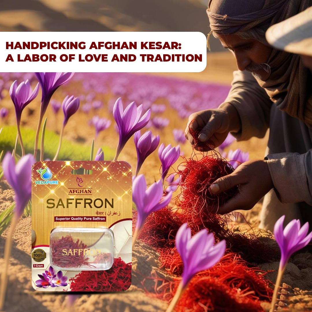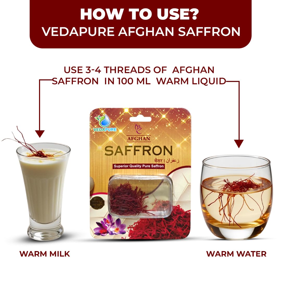 • Premium Quality: Vedapure Saffron comes from the pristine fields of Afghan farming known for producing some of the world's best saffron. This dedication to quality ensures that every strand offers a rich aroma.