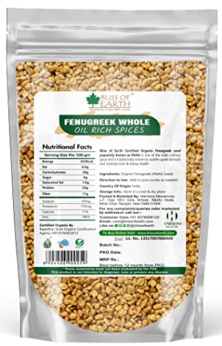 Bliss of Earth USDA Organic Fenugreek Whole.