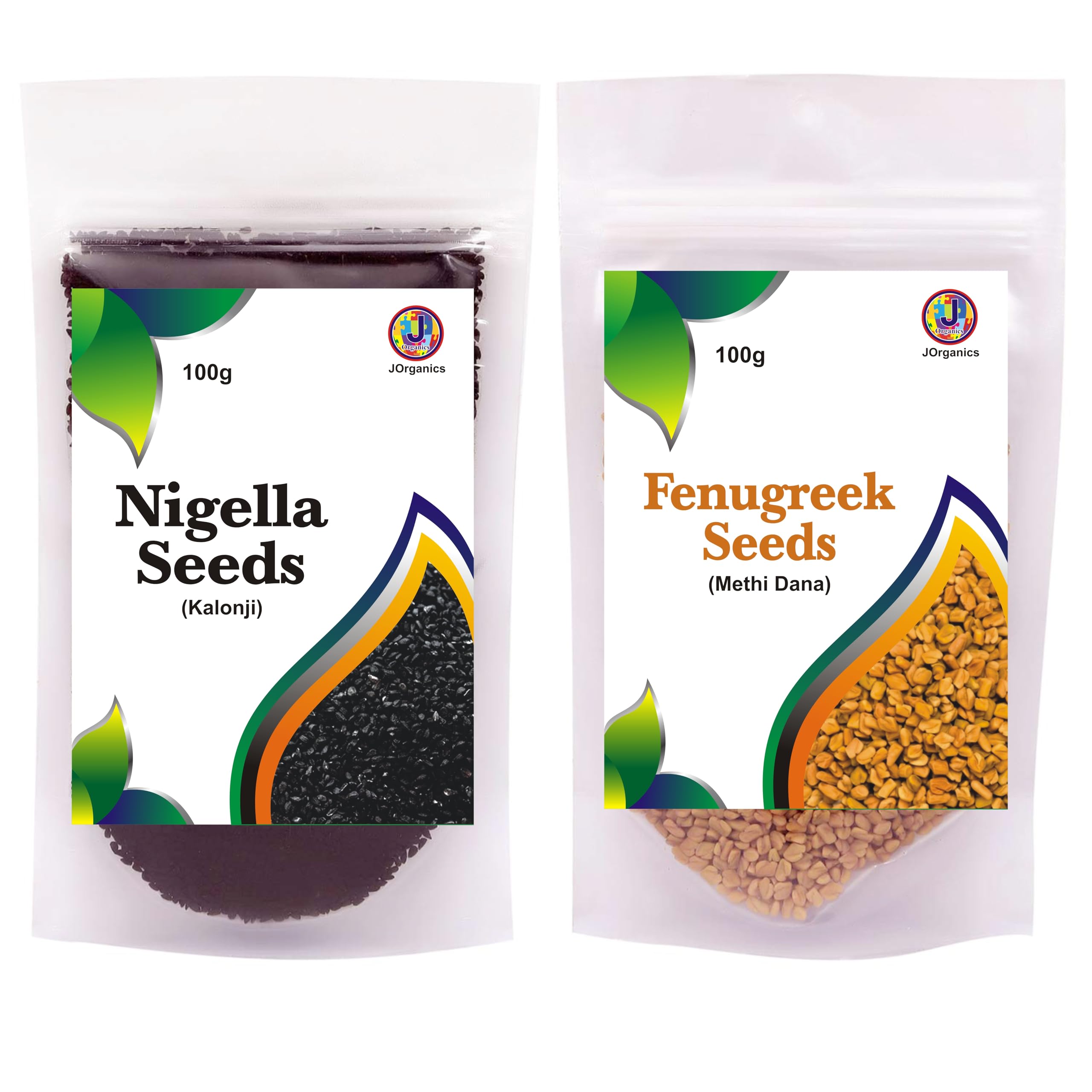 JOrganics Nigella Seeds and Fenugreek Seeds | Vendhayam | Methi | Uluva | Menthya (Kalonji Seed/Black Seed) Methi Seeds (Fenugreek) Whole Spices - Hair Care Combo 200gm