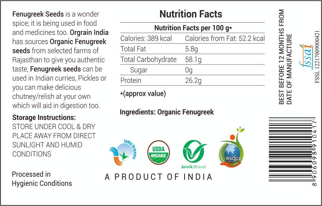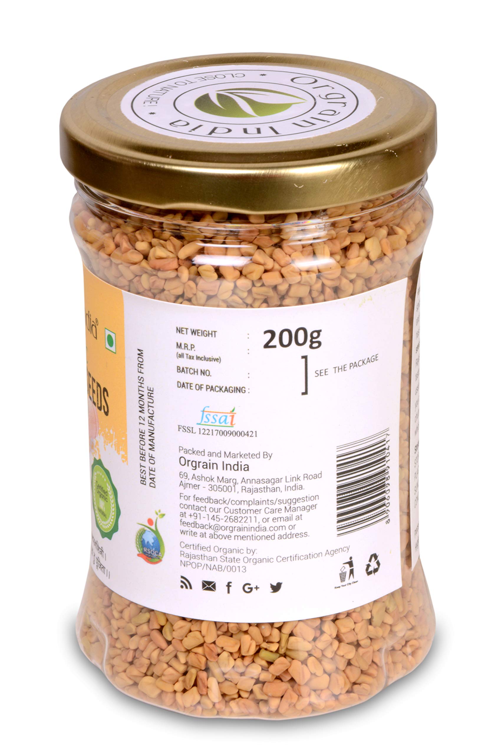 Orgrain India Certified Organic Fenugreek Seeds 200g | Methi Dana | Company-Owned Farmlands | Regulates Blood Sugar Level