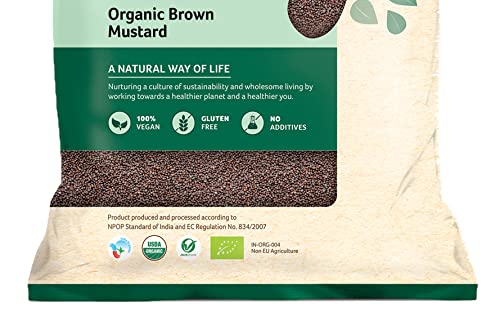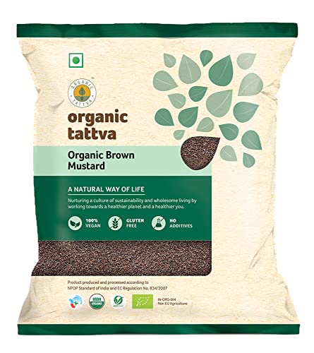 Organic Brown Mustard Seeds also known as Rai are essential spices in lots of regional cuisines. Black mustard adds a unique flavour. It is used widely in âPanch Phoran' spice blend. This spice blend can be utilized to make fish vegetables and other non-vegetarian curry dishes. Organic Tattva's Organic Brown Mustard is filled with protein iron and calcium. Apart from these nutrients Organic Brown Mustardalso contains dietary fibres vitamins and various other nutrients. A 100g serving of Organic Brown Mustard contains 0g trans fat and 0mg cholesterol. The calorie count per serving of Organic Brown Mustard is 542.93. Add a flavourful healthy touch to your food with Organic Brown Mustard by Organic Tattva.