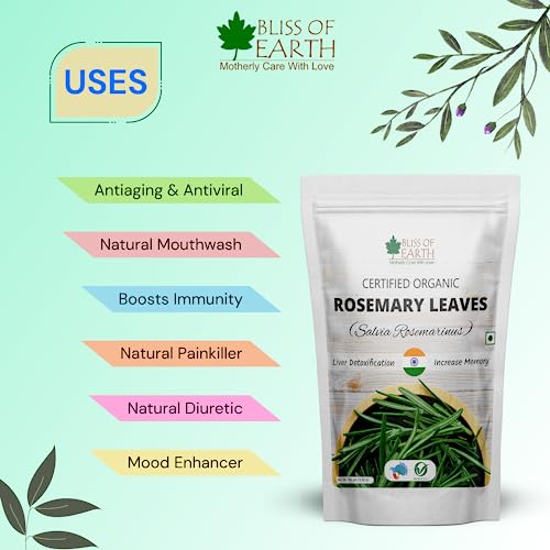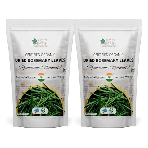 Bliss of Earth Certified Organic Dried Rosemary Leaves (Rosmarinus Officinalis) has a long history of culinary and aromatic uses while widely used in traditional herbs and ayurvedic medicines. Rosemary Leaves is a rich source of antioxidant antimicrobal and anti-inflammaroty compounds and helps protect the body from oxidative damage inflammation and helps fight Problems.