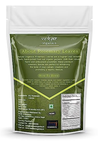 Introducing Vedyaz Organics' Rosemary Leaves the perfect addition to your culinary adventures and holistic well-being. Our premium-quality rosemary leaves are carefully sourced and handpicked from organic farms ensuring the highest standards of freshness and purity. With their distinctive aroma and versatile nature these rosemary leaves are a must-have for every kitchen pantry. Embrace the goodness of nature and elevate your culinary creations with Vedyaz Organics' Rosemary Leaves.