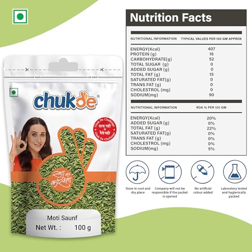 Chukde Moti Saunf Big Fennel Seeds Whole Spices 300g Pack of 100g x 3