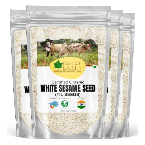 Bliss of Earth USDA Organic Sesame Seeds 4x200 gm White For Eating, Raw Til Seeds