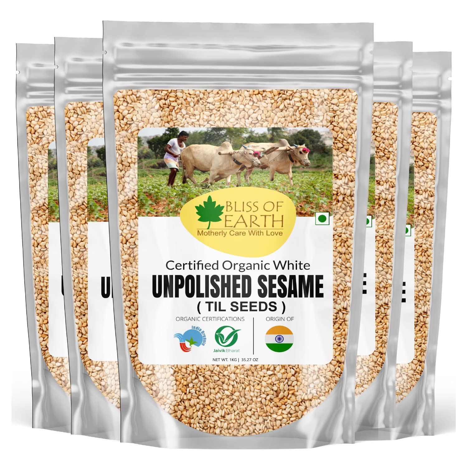 Bliss of Eath Sesame Seeds for Eating - Organic and Raw Til - Unpolished Sesame Seeds 1kg