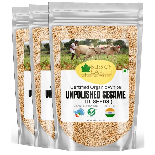 Bliss of Earth Organic Unpolished Sesame Seeds 3x600 gm White For Eating, Raw Til Seeds
