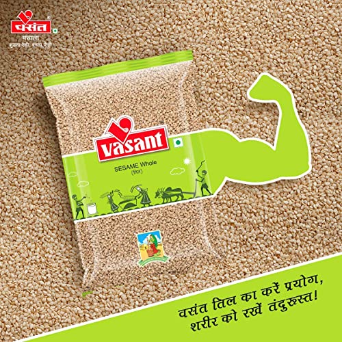 Discover the rich taste and nutritional benefits of VASANT Whole Sesame (Til) Seeds 400g each Pack of 2. Sourced from trusted farms and hygienically packed these white sesame seeds are 100% natural and free from added colors flavors or chemicals. Also known as Tal or Til these seeds are perfect for cooking baking garnishing or making sweets like til ladoos and chikkis. Rich in fiber calcium and healthy fats they support digestion and overall well-being. Ideal for use in Indian Asian and Mediterranean recipes VASANT Til brings a subtle nutty flavor and crunchy texture to your meals. These sesame seeds are thoroughly cleaned and packed using advanced technology to retain their freshness purity and aroma. A must-have in every kitchen they are suitable for daily cooking and festive recipes alike. Trust VASANT for quality purity and tradition in every pack naturally delicious and full of health.