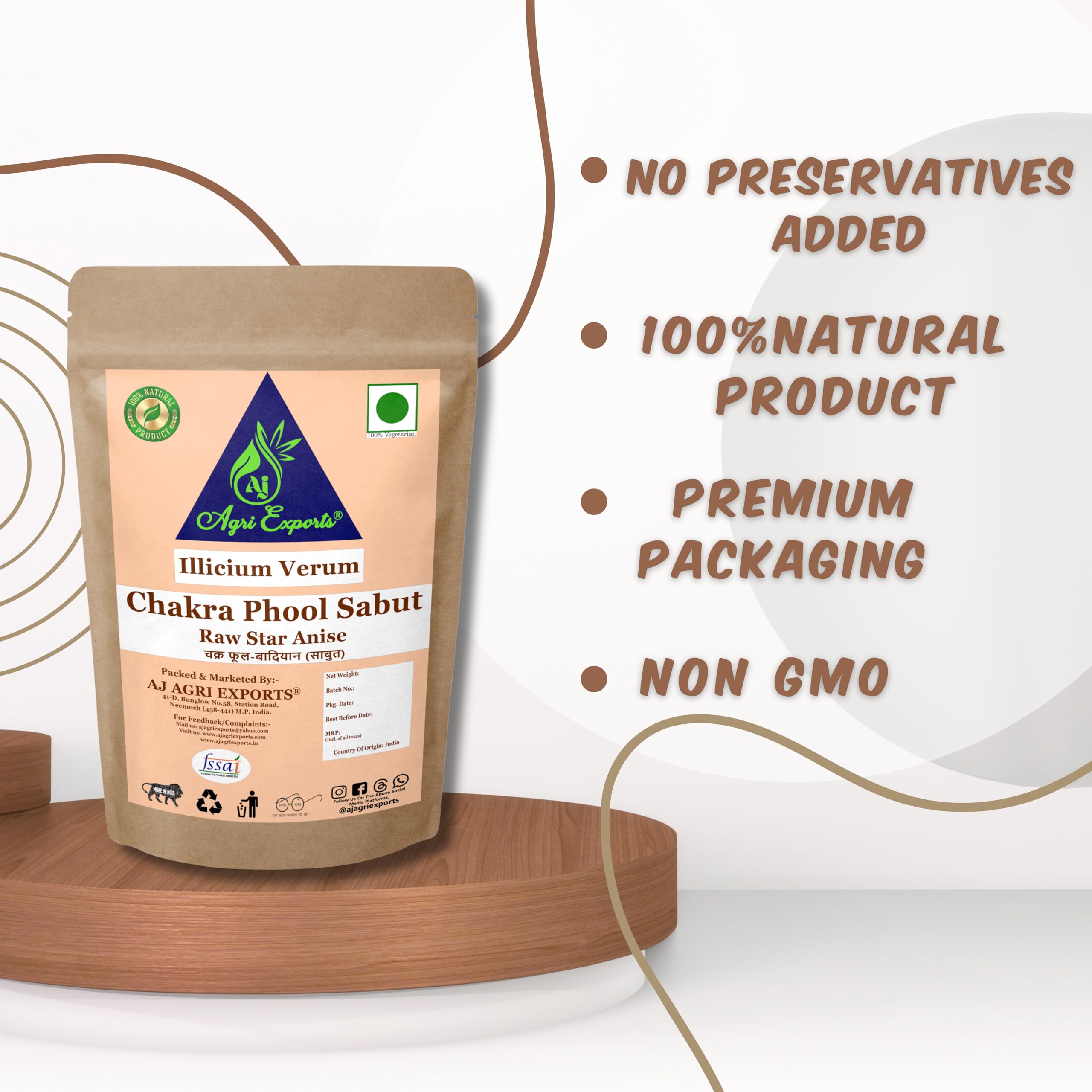 AJ AGRI EXPORTS Star Anise - Star Anise with a Bold Licorice-Like Flavor for Unique Culinary and Spice Mix Uses | Non-GMO (100 Gram) (Pack of 1)