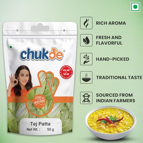 Chukde - Tej Patta | Indian Bay Leaf | Handpicked & Carefully Packed | Ideal for Flavorful Curries Biryanis and Rice Dishes | Anti-inflammatory Properties | 50 Gram (Pack of 6)