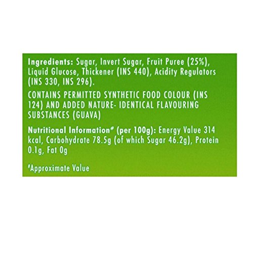 Alpenliebe Juzt Jelly in Guava flavor enjoy the taste of juicy jellies. This delicious pulpy jelly are made with 25% fruit pulp. The goodness of 25% fruit pulp makes it yummy and ideal for consumption by kids and grown ups alike. Available in an amazing share pack to enjoy with friends and family. This Product is 100% Vegetarian.